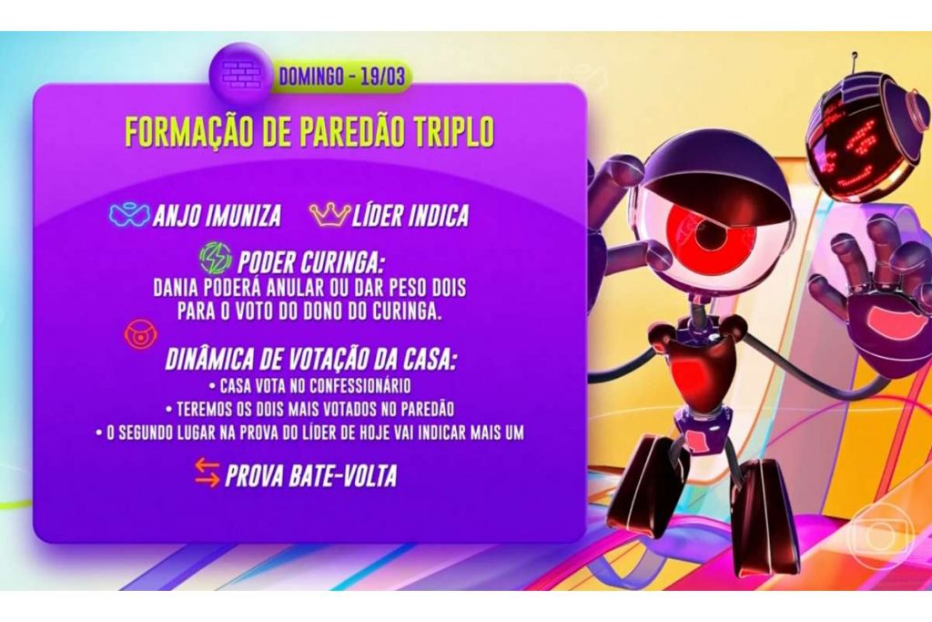 Depois disso, Dania vai decidir se o voto do dono do Poder Curinga vai ter peso dois ou se será anulado. Só depois disso começa a votação da casa, no Confessionário. Os dois mais votados serão indicados.