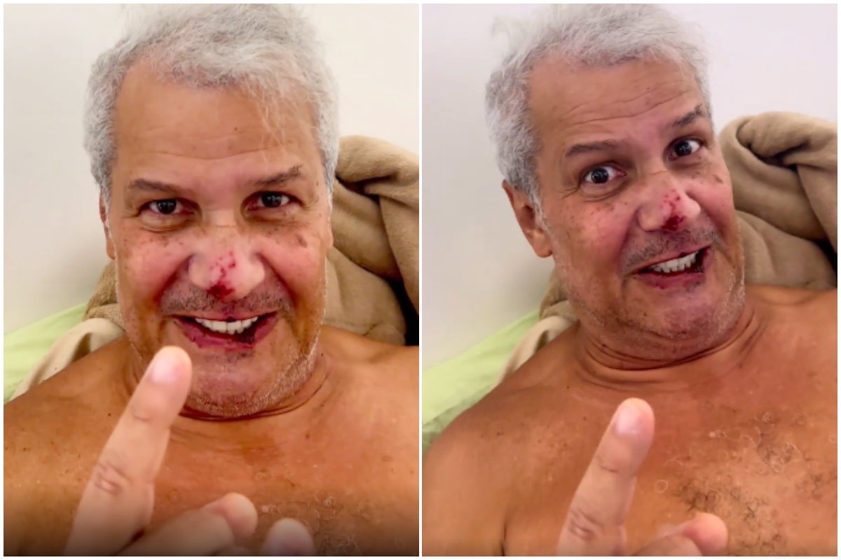 A gravação é curta, tem apenas 2 segundos, mas é possível notar ferimentos na boca e no nariz do apresentador. Um rapaz sugeriu o que pode ter acontecido. “Lesão de aba de nariz.. por uso de cateter nasenteral… isso é erro de enfermagem”, opinou.