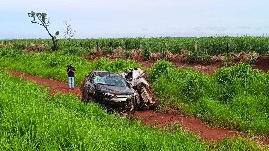 Com o impacto, os dois veículos saíram da pista e capotaram à margem da rodovia.