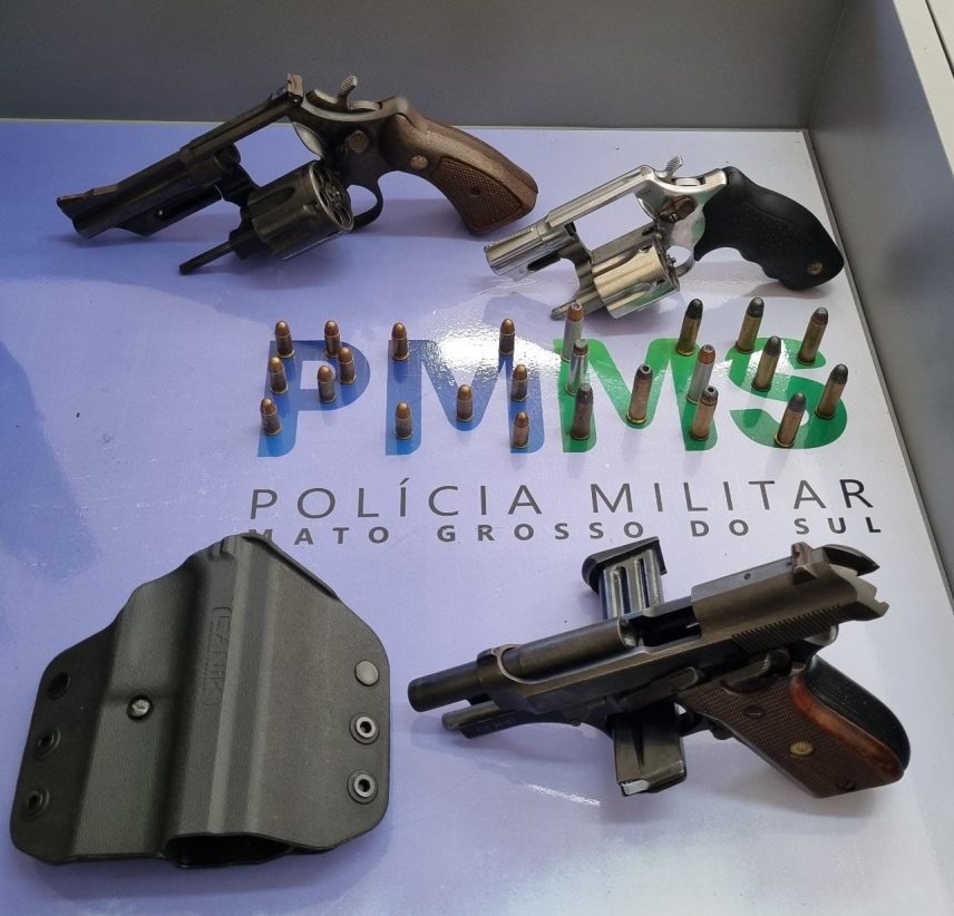 Durante o final de semana, foram capturados dois foragidos da justiça e realizado a prisão de um indivíduo por desobediência e posse irregular de arma de fogo. Com esse indivíduo, foram apreendidas 3 armas de fogo. Ele estava envolvido com o tráfico de drogas na região e tinha 26 registros policiais por tráfico de drogas, porte de drogas para consumo, desacato, receptação, furto e porte ilegal de arma de fogo.