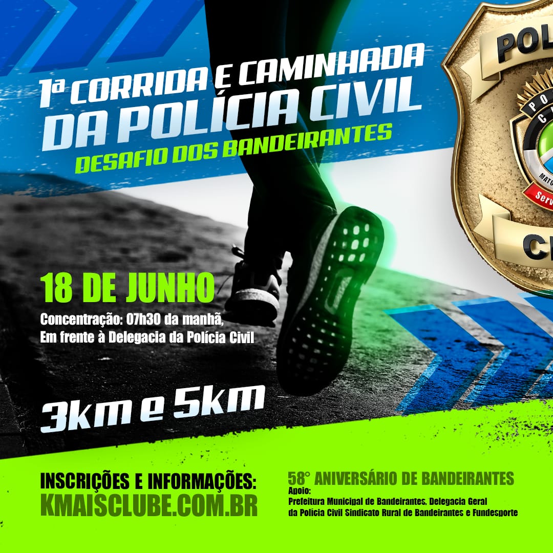 Acontece neste domingo, 18/06, em Bandeirantes-MS, a 1ª Corrida e Caminhada da Polícia Civil – Desafio dos Bandeirantes.