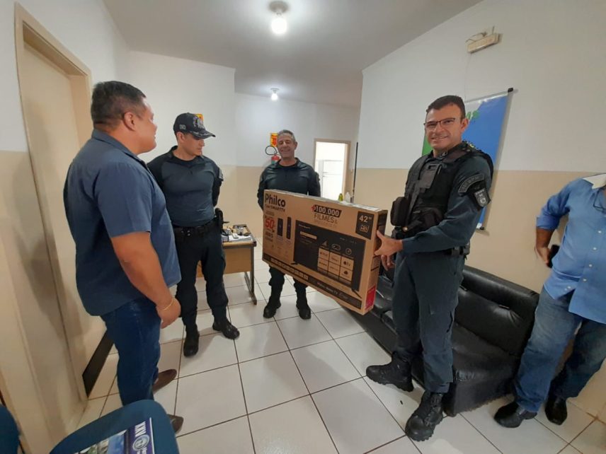 Além das autoridades mencionadas, o pelotão, também, recebeu a visita da diretoria da AME, Capitão PM RR MÔNACO – Presidente e do Conselheiro Fiscal – Subtenente PM RR RAMOS , os quais fizeram entrega de uma TV de 42” por meio de cautela para utilização no pelotão.
