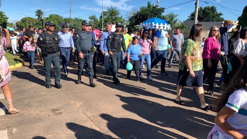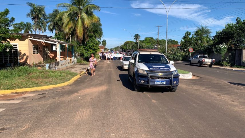 O comandante participou da caminhada em favor da paz com os alunos das escolas do município.
