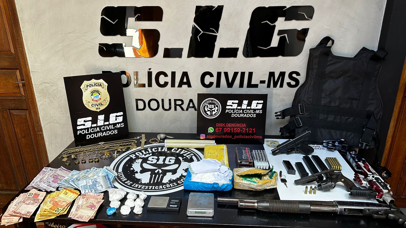 O investigado foi localizado na cidade Fátima do Sul, por equipes da Seção de Investigações Gerais, da delegacia local, que auxiliaram na busca. Com o indivíduo foi localizada uma porção de cocaína.