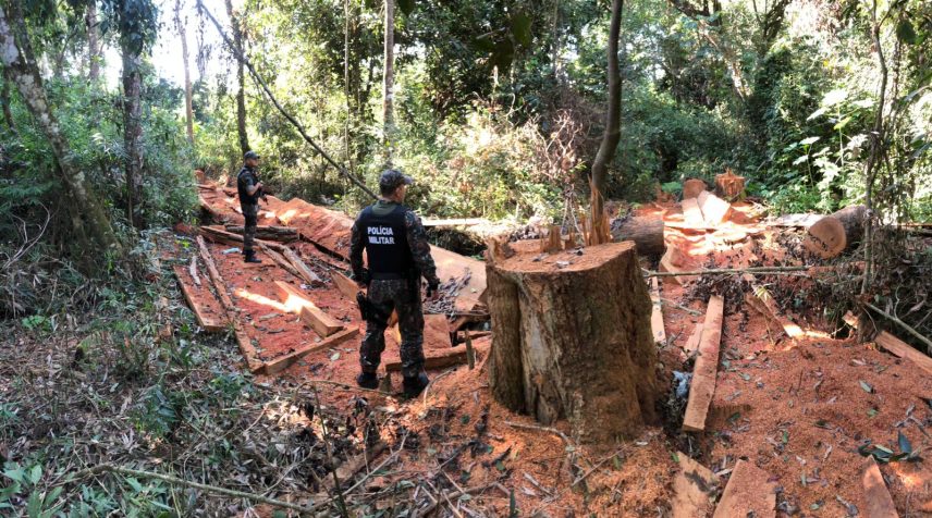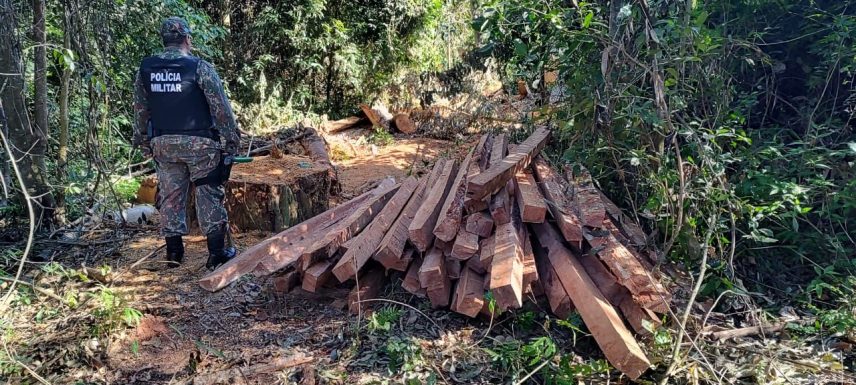 Nesta quinta (25) e sexta-feira (26), a 5ª Companhia de Polícia Militar Ambiental realizou a Operação Peroba Rosa nos Assentamentos Santo Antônio, Santa Rosa e Tamakavi, localizados no município de Itaquiraí, com o objetivo de combater a extração ilegal de madeira em áreas de reserva legal situadas no bioma Mata Atlântica.