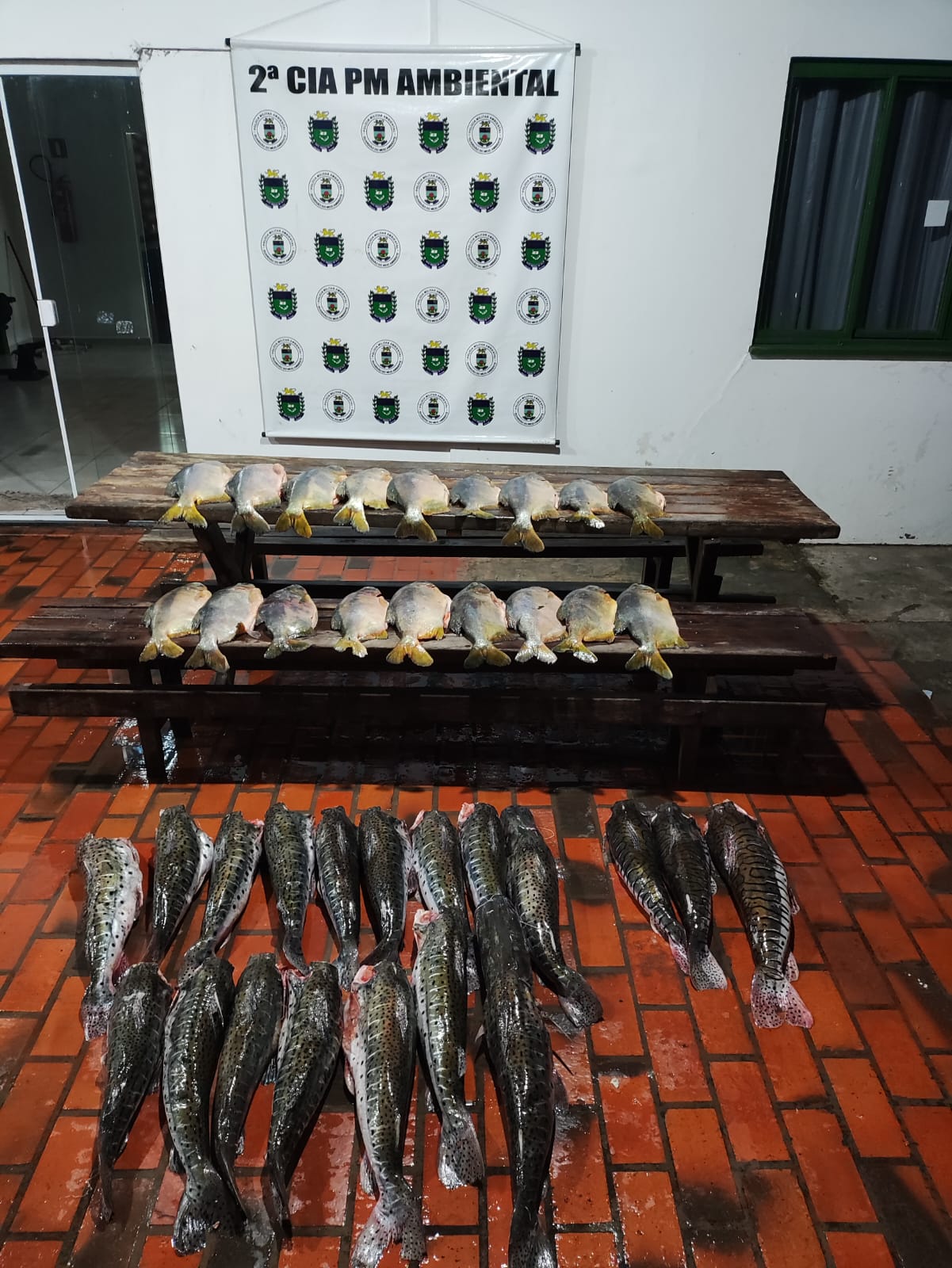 Diante dos fatos, os policiais apreenderam um total de 08(oito) redes de pesca, somando 600 metros de comprimento, e 108kg de pescado, incluindo espécies como pintado, cachara e pacu. Todo levantamento feito e material apreendido foi encaminhado para Delegacia de Polícia Federal, para as devidas providências.