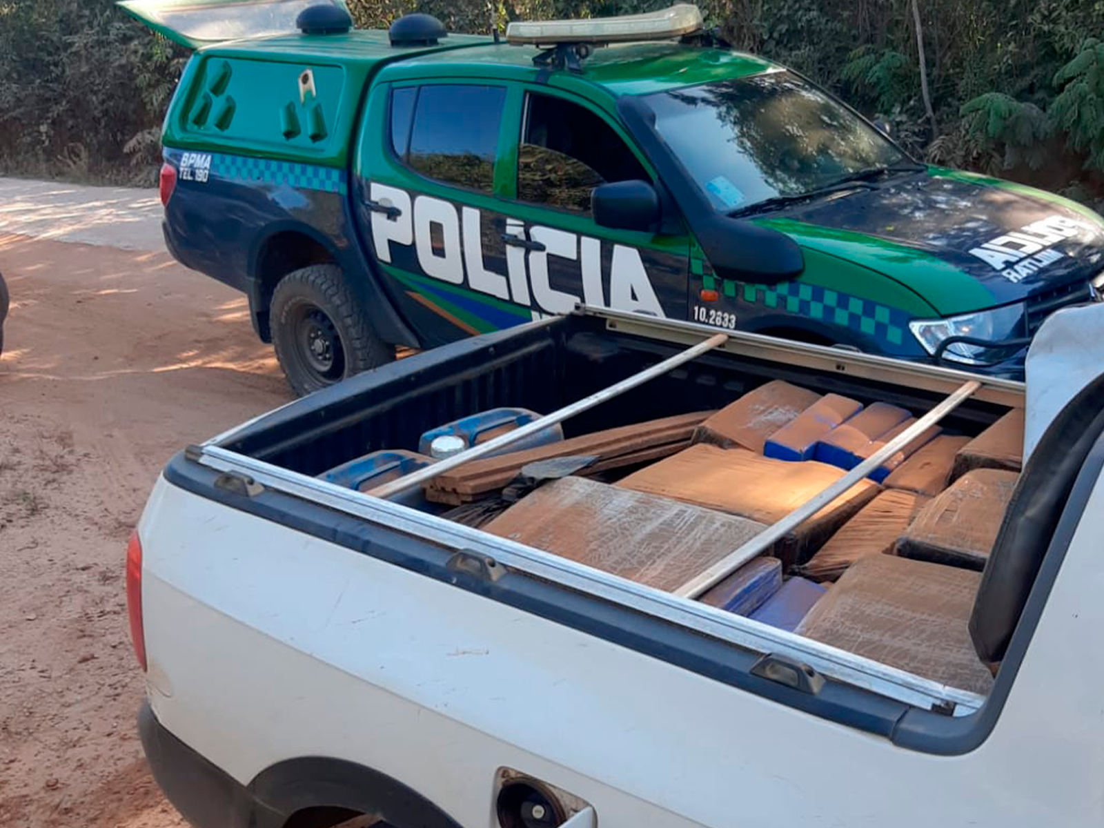 Uma guarnição da Polícia Militar Ambiental de São Gabriel do Oeste realizava patrulhamento na tarde desta quinta-feira (18) pela rodovia MS 142, quando, na região conhecida como Ponte da Matinha, se deparou com dois homens em dois veículos parados à margem da via. Os policiais pararam para averiguar a situação e, durante a fiscalização, localizaram na carroceria de um dos veículos 400 kg de substância análoga à maconha e dois galões de combustível.