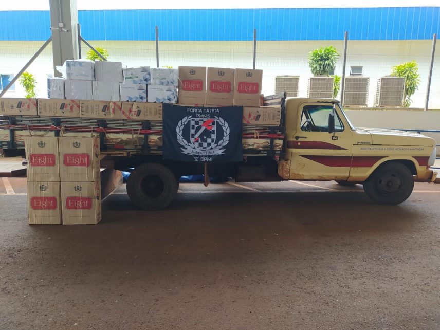 Força Tática realiza apreensão de cigarros e agrotóxicos contrabandeados.