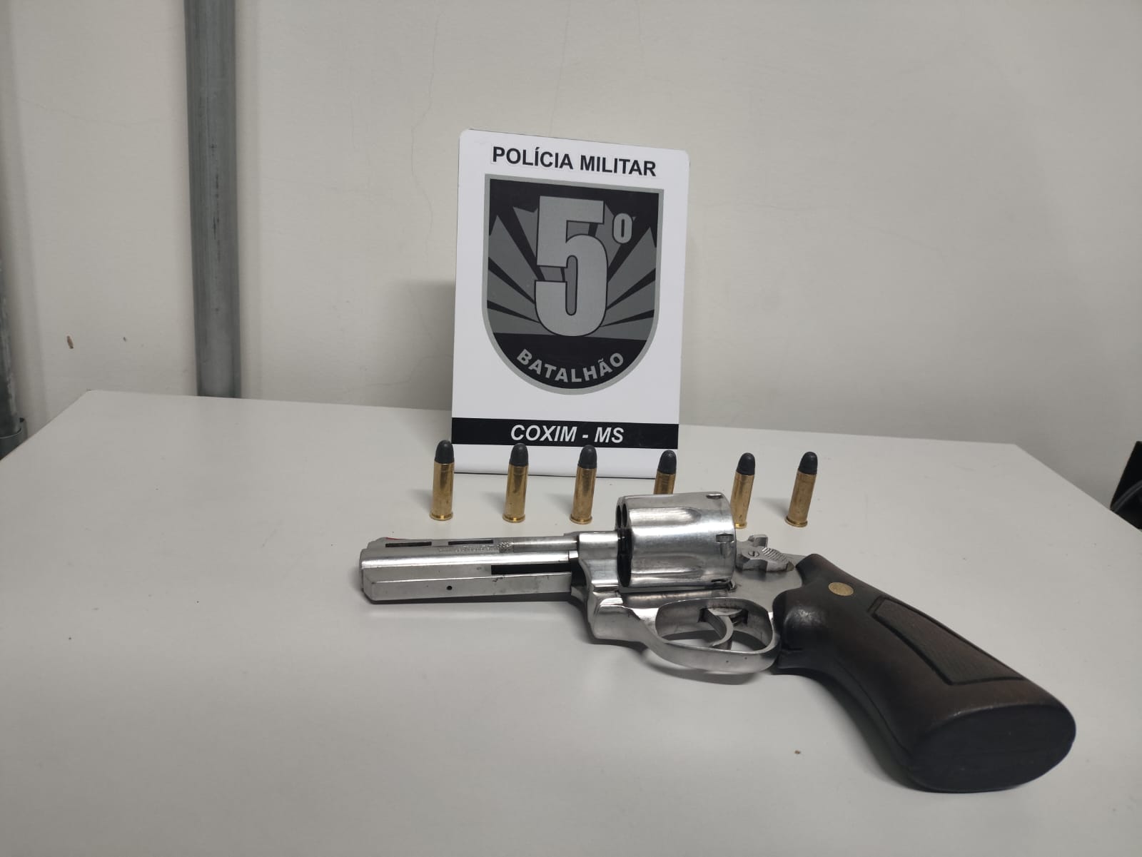 Os militares deslocaram-se rapidamente ao local e abordaram o suspeito. Durante a abordagem, o homem admitiu que havia deixado a arma em seu veículo. Após buscas, os policiais encontraram um revólver calibre .38 especial carregado com seis munições intactas.