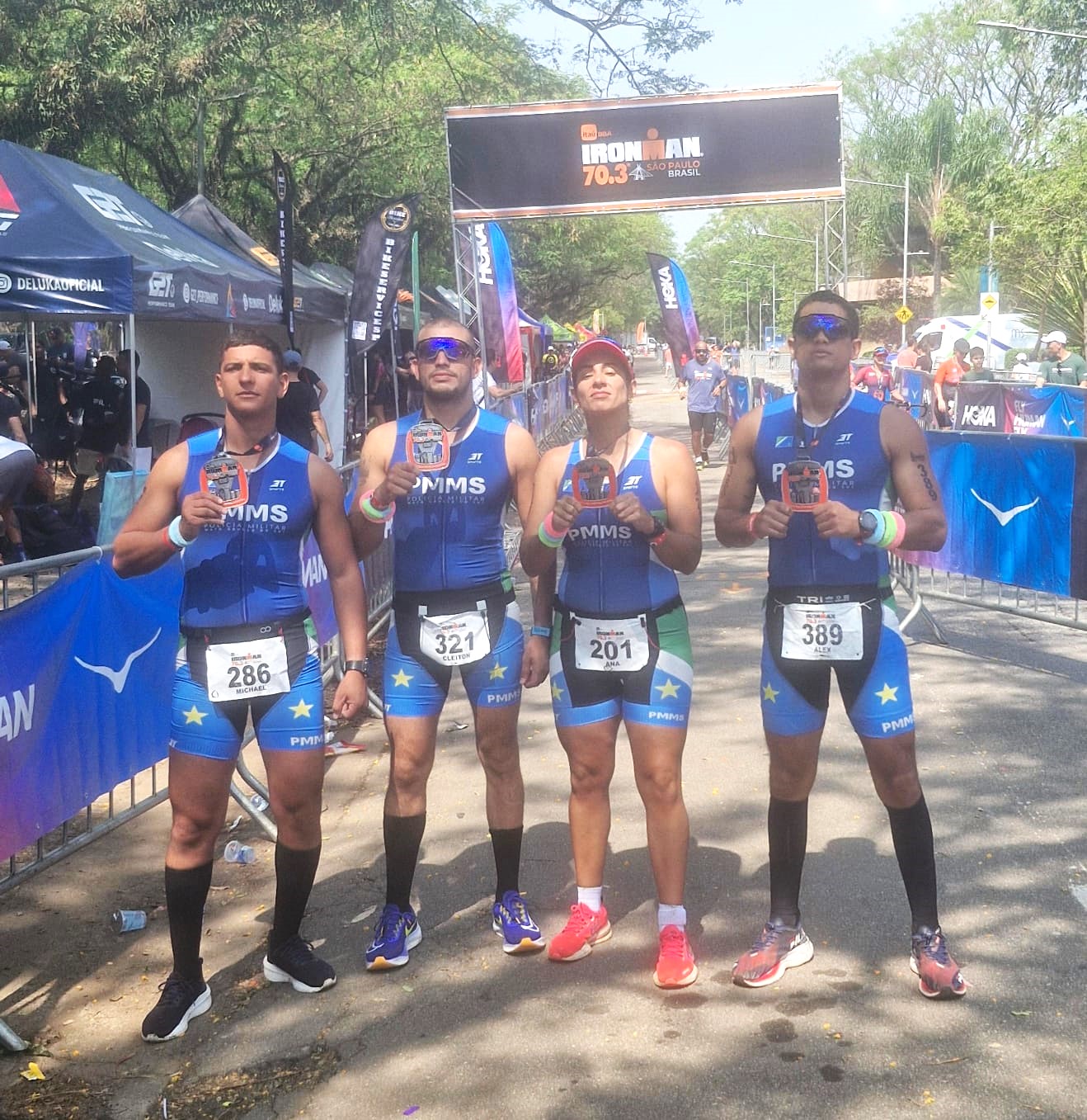 A Sargento PM Ana Flavia Lima Ferreira, o Cabo PM Alex Lemos, Soldado PM Michael Douglas de Lima Oliveira e o Soldado PM Cleiton José Souza Silva, completaram os 9 km de natação, 90 km de ciclismo e os 21,1 km de corrida.